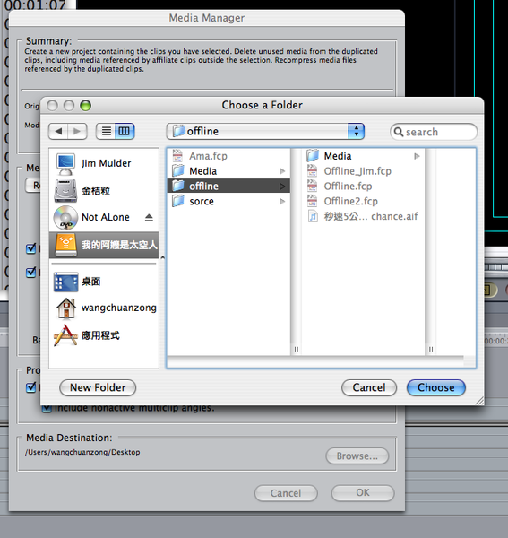 其實Offline剪接的精髓,在於「同檔名」。只要檔名不變,電腦認的是「路徑」與「檔名」,而不是你原先在哪邊剪接的。也就是說,我們可以在B電腦完成初剪,再回到A電腦去「借屍還還」。如此一來,即便是5年前的小i-Mac,也可以輕輕鬆鬆地剪著DV的檔案。只要剪接完成後回到大電腦去輸出即可。