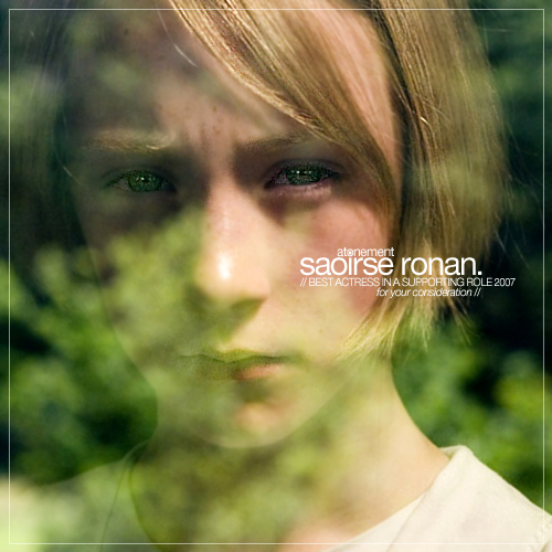 Saoirse Ronan根本就是天才型的演員,她在《贖罪》裡頭表現的可圈可點,是三個階段的Briony裡頭演出最精彩、最亮眼的一個。我非常喜歡她在《贖罪》裡頭的一幕,在面對逐漸瓦解的家族關係和姊妹情誼,她望向窗外那個因妒忌而撒下瞞天大謊的水池,隨著打字機的聲音越敲越響,象徵心中的衝擊越來越大,此時鏡頭緩緩地zoom in到她的眼睛。那一幕約略有三十秒,但望向窗外的Saoirse Ronan神情呆滯,眼睛連眨都沒眨一下,充份展現深不可測的心機,以及日後逐漸埋下的罪惡種子。那神情叫一位當時只有十三歲的小女孩來演出,著實叫人不寒而慄。